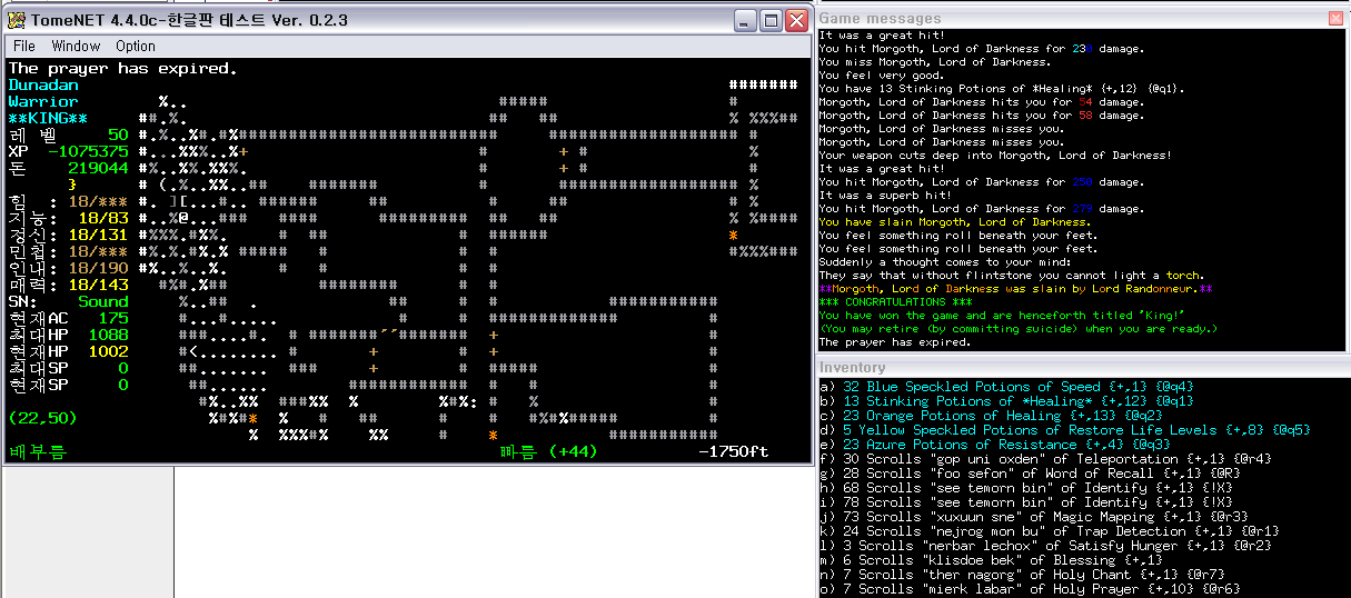 TomeNET이 제게 '최초'라는 의미가 있는 게임이 되었네요.